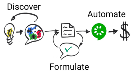 In this diagram, requirements are represented by the light bulb at the left. The requirement may have originated from a customer enhancement request, an insight from the CEO, a suggestion from an intern, or any number of other sources. How those myriad ideas are validated and prioritised is a problem not addressed by BDD.