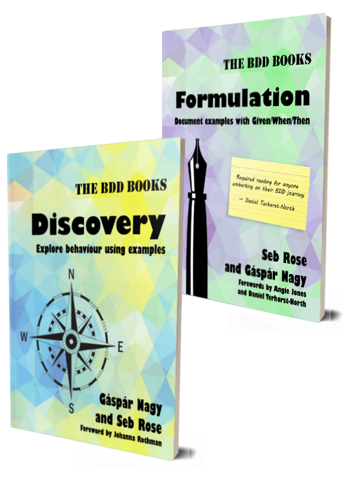 Seb: These books don't simply document what we've done, or what other people have done – they’re part of the evolution of BDD. Gáspár came up with the term “formulation” around six years ago, and no one had used it in this way before. In fact, when we called the great and the good of the BDD world together, there was a lot of pushback against the term. People wanted to call it specification or whatever. We said, fine, everyone do what they want, but we carried on calling it formulation, and that's the word that stuck. So yeah, go us! Go Gáspár!
