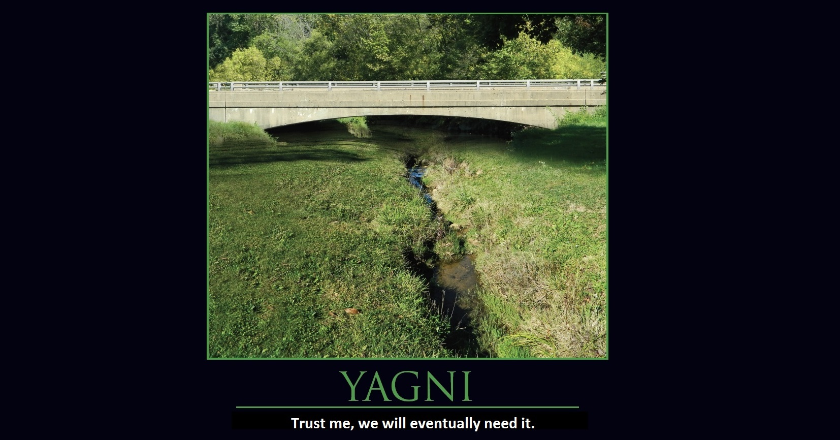 The XP community approaches waste from another direction, with the concept of you aren't gonna need it (YAGNI). In a nutshell this tells us not to guess the future. Deliver only what you actually need today, not what you might need tomorrow – because you may never need it.